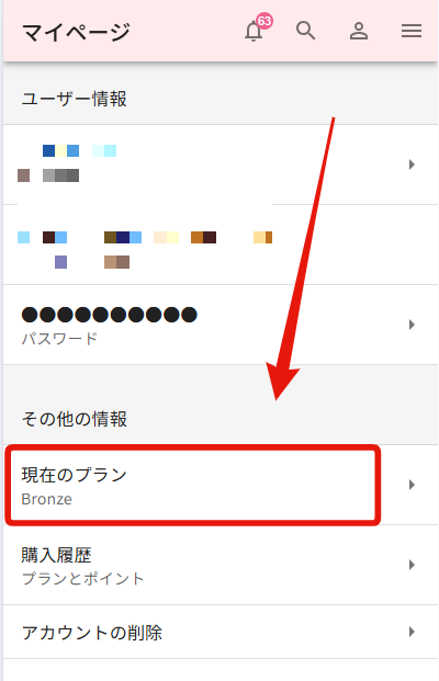 現在のプランを選択 マイページ内にある項目の中から「現在のプラン」を選択します。
