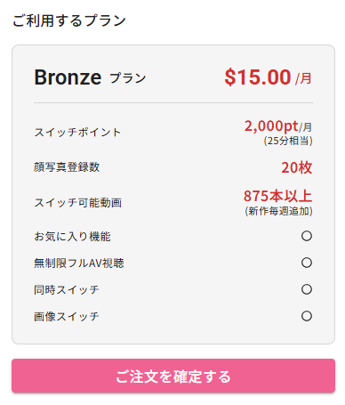 FACESWITCHの基本的な有料プランは「Bronze(ブロンズ)プラン」です 。